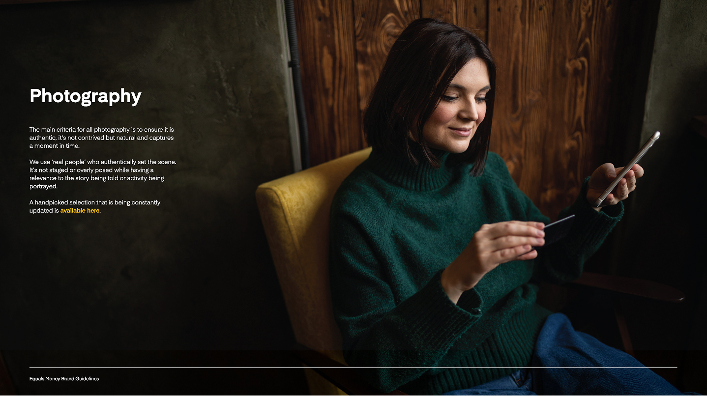 Equals Money had a strong, well-defined brand, but scaling marketing design with limited resources was becoming a challenge. As the sole member of the brand design team, I was responsible not only for creating assets, but for enabling the wider Growth team to confidently produce marketing content themselves. Without templates, clear processes, or shared standards, the brand risked being underused and inconsistently applied. Photography was another pressure point, with heavy reliance on stock imagery and no clear guidance on quality or selection.
